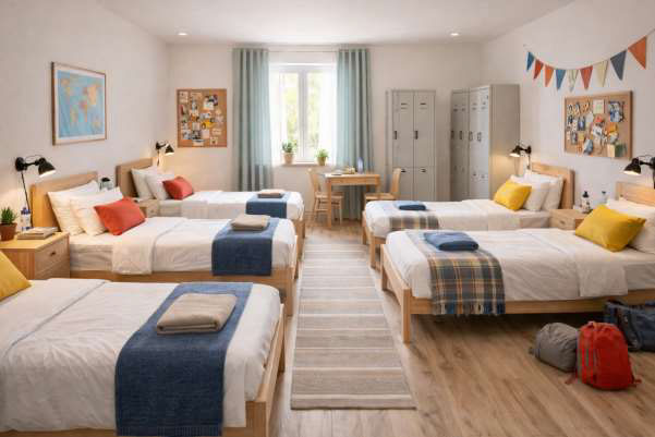 Aufenthaltsräume sind selten, da in dem gleichen Zimmer 1-5 Gäste sein könnten.